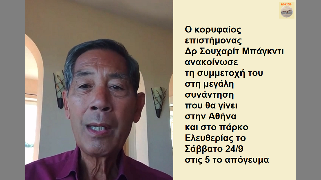 Ο κορυφαίος επιστήμονας, ανακοίνωσε τη συμμετοχή του στη μεγάλη συνάντηση που θα γίνει στην Αθήνα και στο πάρκο Ελευθερίας το Σάββατο 24/9 στις 5 το απόγευμα.