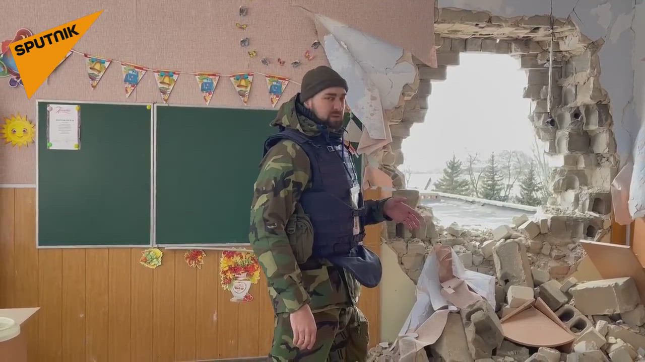 Ukrainian troops shell a school in Donetsk from Grad missile systems
