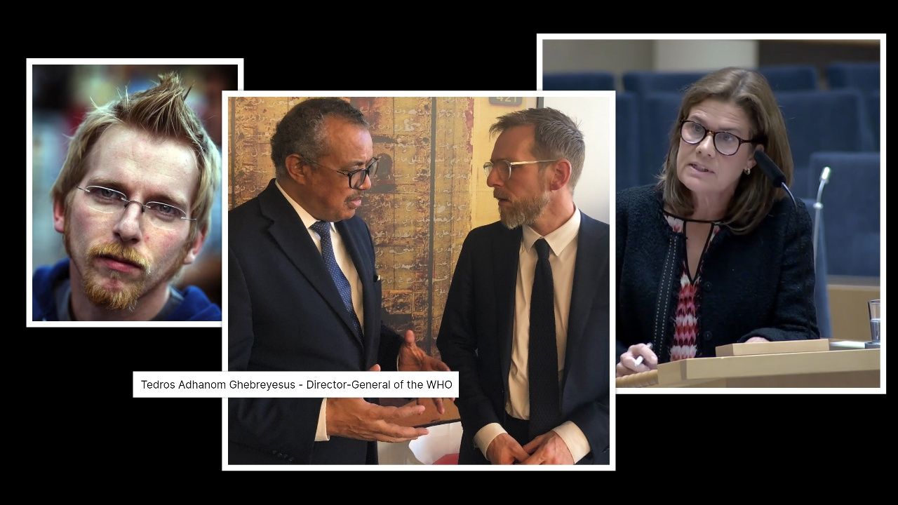 Socialminister Jakob Forssmed och Elsa Widding i en debatt om risker med "WHO treaty on pandemics"