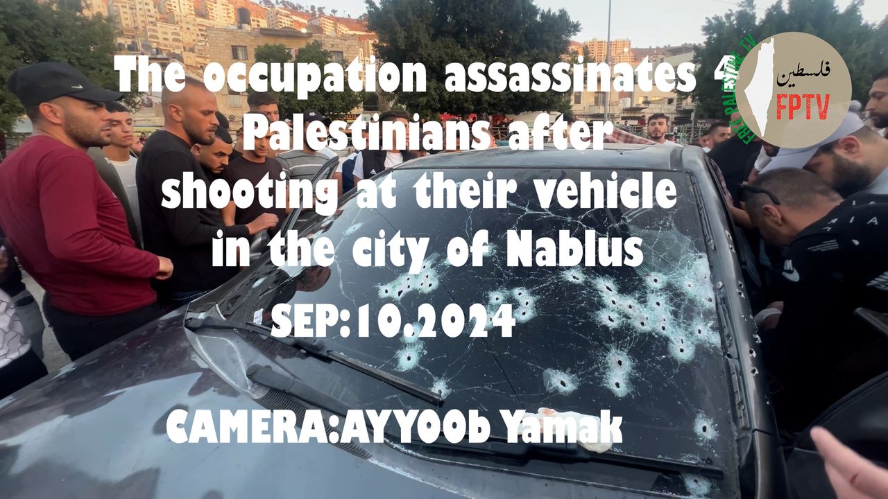 The funeral of four young men from the city of Nablus was held: Issam Al-Salaj, Naim Abdul Hadi, Salim Abu Saada, and Abdul Halim Al-Sarfandi, who were assassinated by the Israeli occupation forces while they were in their car. Ayyoob Yamak was on site and interviewed Sohaib Al-Salaj, brother of the martyr Issam Al-Salaj.
