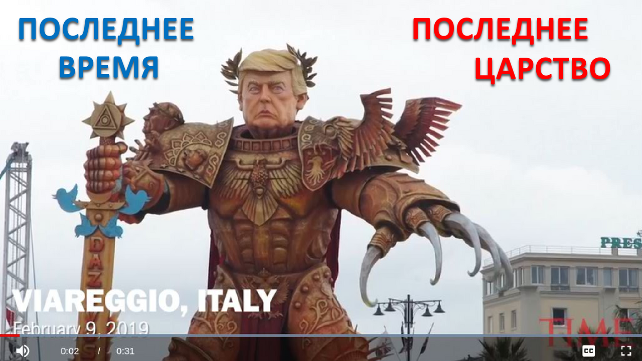 Статуя Дональда Трампа на итальянском карнавале 2019 г. - признак последнего времени и образ последнего царства