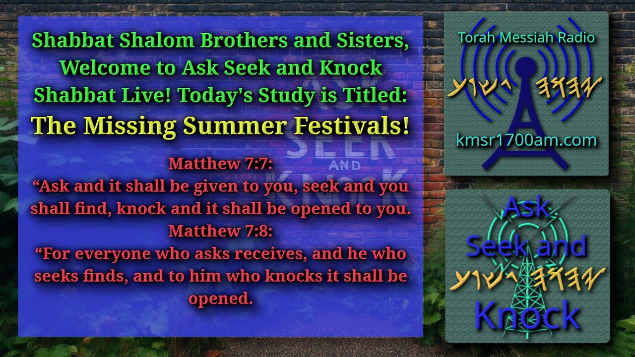 Thank you for joining us with this study. You may want to get your highlighters and notebooks. Remember to Please Test Everything! If you would like to fellowship with us, you can at 4pm Eastern on (Day 7) Every Shabbat. Go to or https://www.kmsr1700am.com/ then click on the Jitsi button.