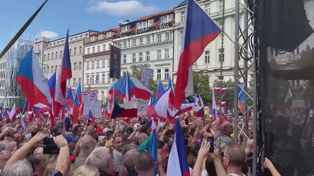 More than 70,000 Czechs are rallying in Prague demanding the resignation of the government, cheap Russian gas and neutrality.