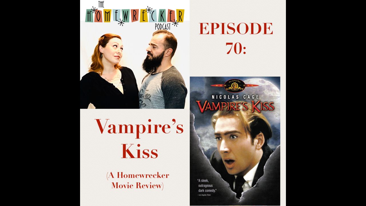It's time for another movie review... this time, we watched the 1988 Nicolas Cage dark comedy Vampire's Kiss. We talk all about the zany wackiness of Nicolas Cage's character and whether or not it was horrible overacting or just plain genius, we try and decipher just what the hell was going on in this movie and his accent, what was real and what wasn't, cockroaches and animal rights activists, phony vampire teeth, and so much more! Plus, we talk a little about current events and homeschooling. It's another fun conversation on this week's Homewrecker Podcast!