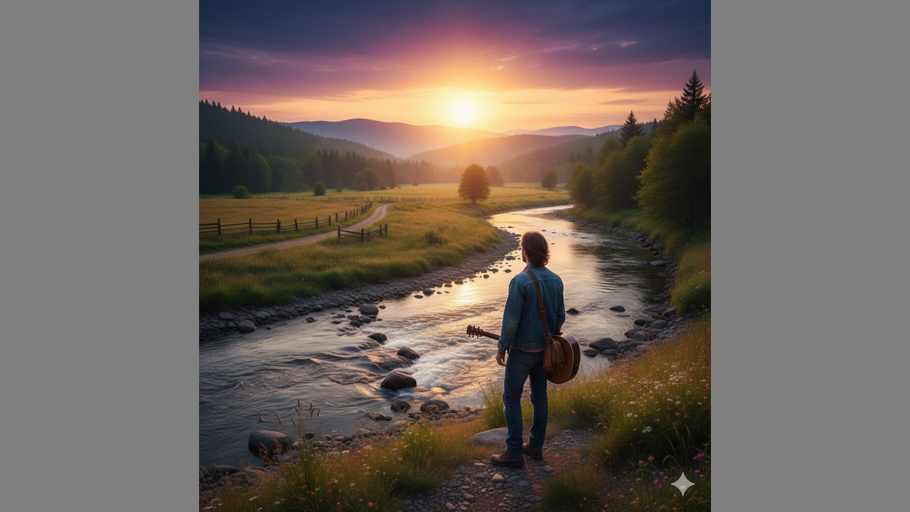 [Acoustic guitar strumming, light percussion]