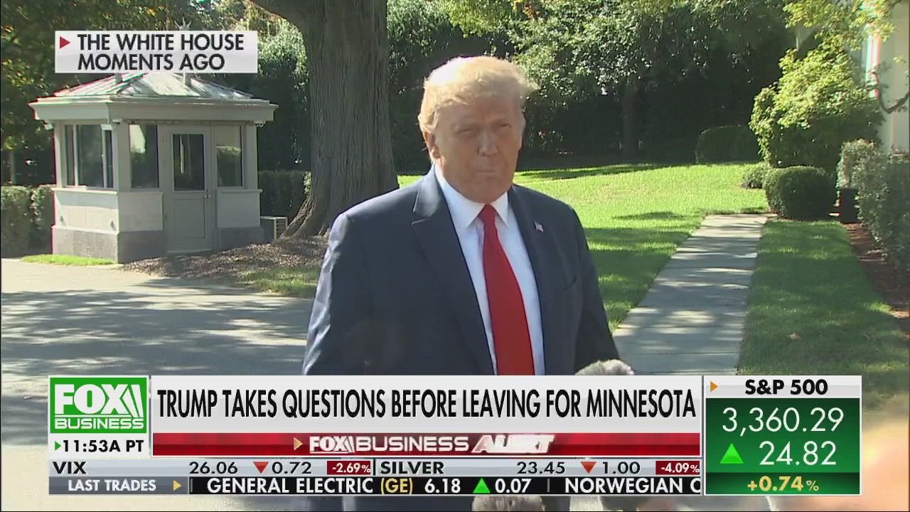 President Trump speaks to press ahead of his rally in Minnesota.