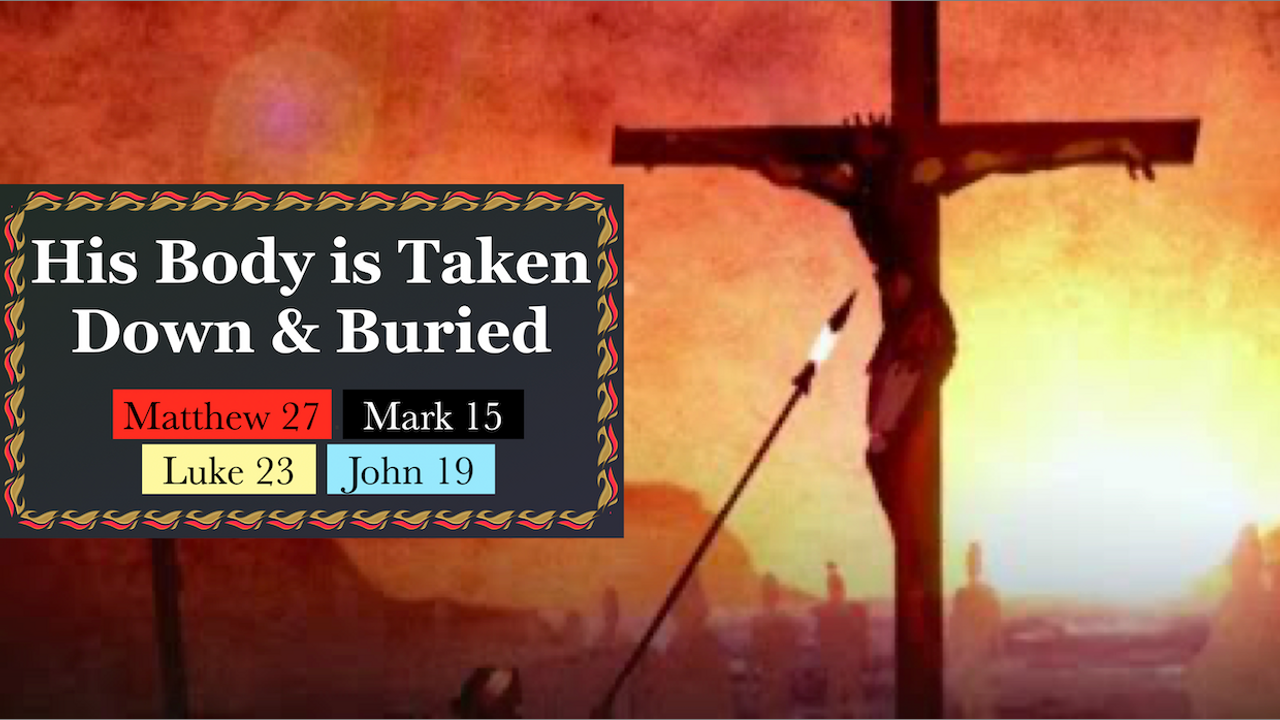 Matthew 27:55, Mark 15:40, Luke 23:48-49, John 19:31-37 combined