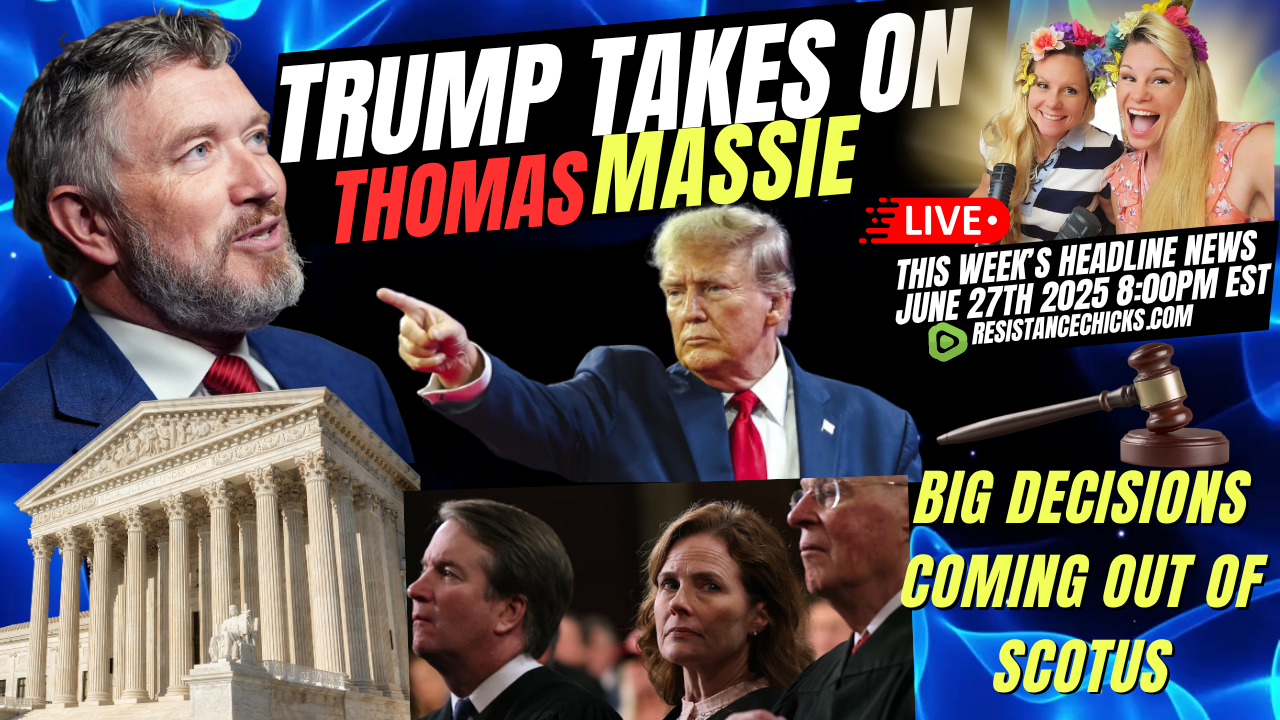 Weekly News Report! Thomas Massie is one of the only ideologues in Congress. He's pushed back on Trump's war powers and his big, beautiful bill, and now Trump is coming for him with a massive new ad. Several big rulings coming out of the Supreme Court today, including a win for Trump in which Amy Coney Barrett wrote the majority opinion that activist judges could not issue nationwide injunctions on Trump's executive orders. Also, in what should be common sense, SCOTUS ruled parents are allowed to opt their children out of classes that include books with LGBTQ characters. We will also look at the bombing in Iran, and did the United States actually stop Iran's nuclear program or just set it back? Get Ready For This Week’s Headline News! Read More: https://www.resistancechicks.com/trump-takes-on-thomas-massie/