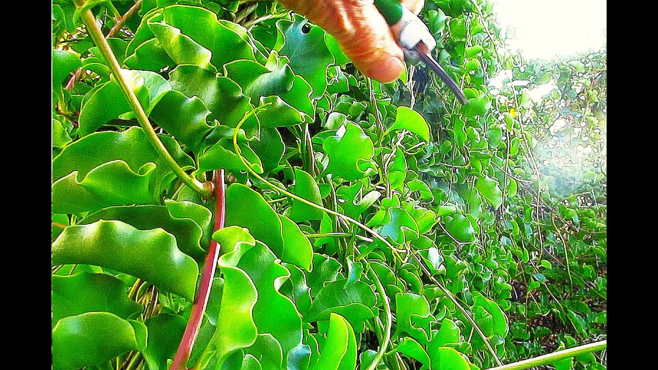 Only a few years back I got Madeira vine in my yard from some of my father-in-law’s pots that came here when he moved into aged care. It’s taken me a while, but over the past 2 to 3 years, I’ve been using it to my garden’s benefit, as it is a fast provider of shade in the warmer growing months. It could be grown over trellises above garden plants for summer months, and its feeder stems cut in time for sunshine in winter.