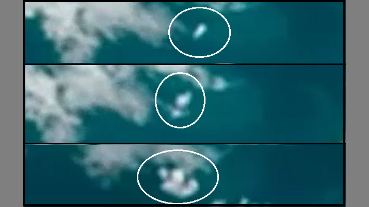 Harrison, Arkansas – The Project Black Star Investigators at https://www.terral03.com have identified evidence of an airborne missile in flight and splashing down for the payload to detonate at the epicenter location of the 5.8 Hunga Tonga Earthquake using satellite images2,3. The USGS seismic data5 identified the earthquake epicenter depth at sea level (0.0-kilometers) common to military missile tests in ocean waters. The Japan Times6 reported North Korea missile tests on January 15, 2022 (CBSNews Update7), the same day as the 5.8 Hunga-Tonga Ha’apai volcanic eruption event. A complete scan of all available satellite imagery will provide the data required for US Military elements at the Diego Garcia Facility8 to identify the source of the missile launch. The evidence supports the hypothesis that the Koreans chose the Hunga Tonga-Hunga Ha’apai Volcano crater location as the missile strike location due to recent volcanic activity9 providing cover for the ongoing missile test operation.