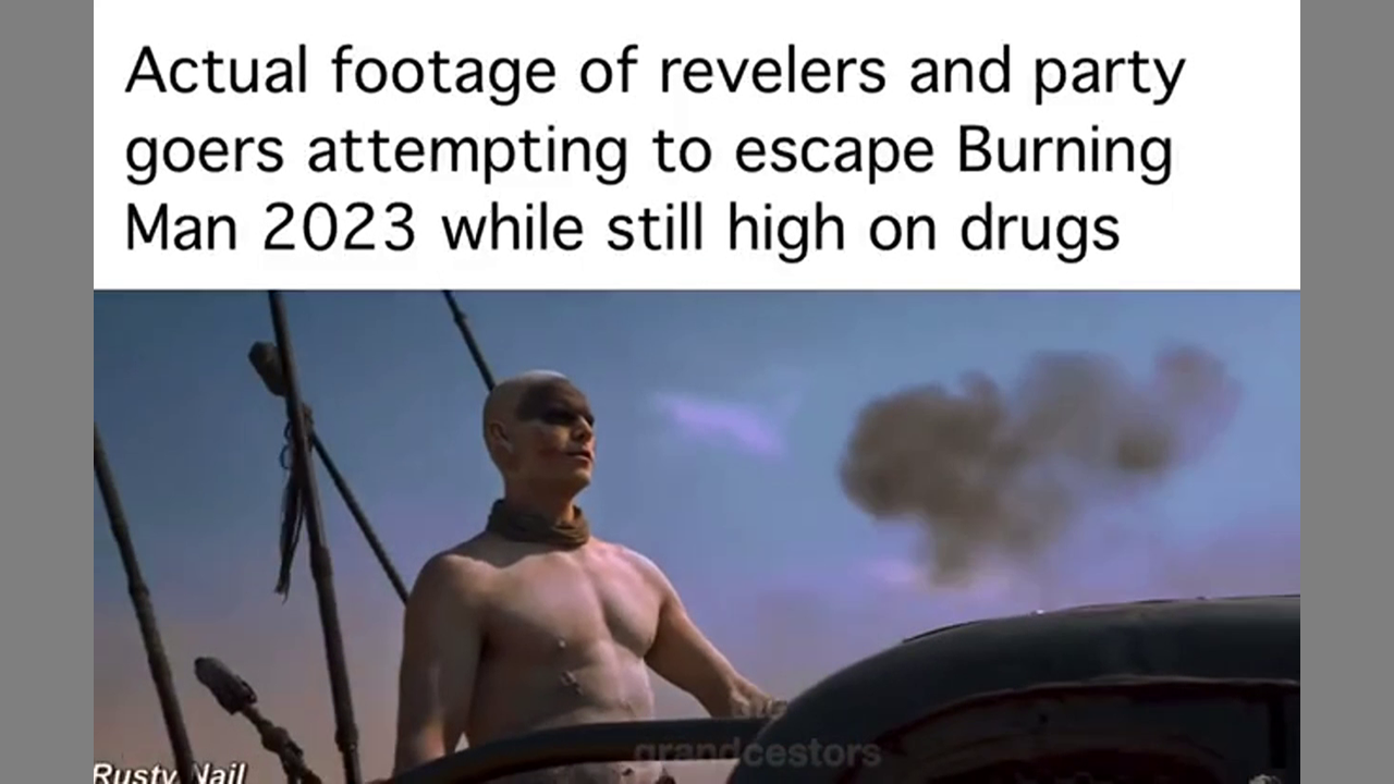 Actual footage of revelers & party goers attempting to escape Burning Man 2023, while still high on drugs.