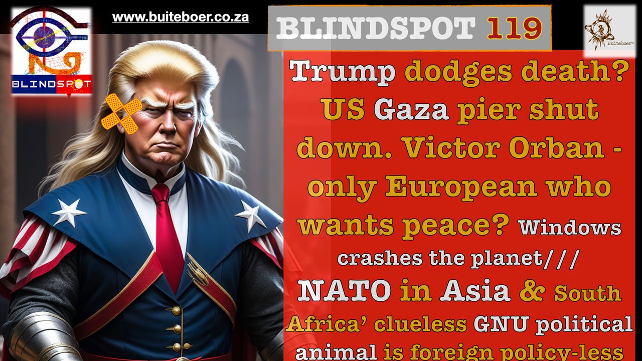 Blindspot 119 Trump dodges death? US Gaza pier shut down. Orban, the only European who wants peace? While in South Africa: GNU political animal is foreign policy-less