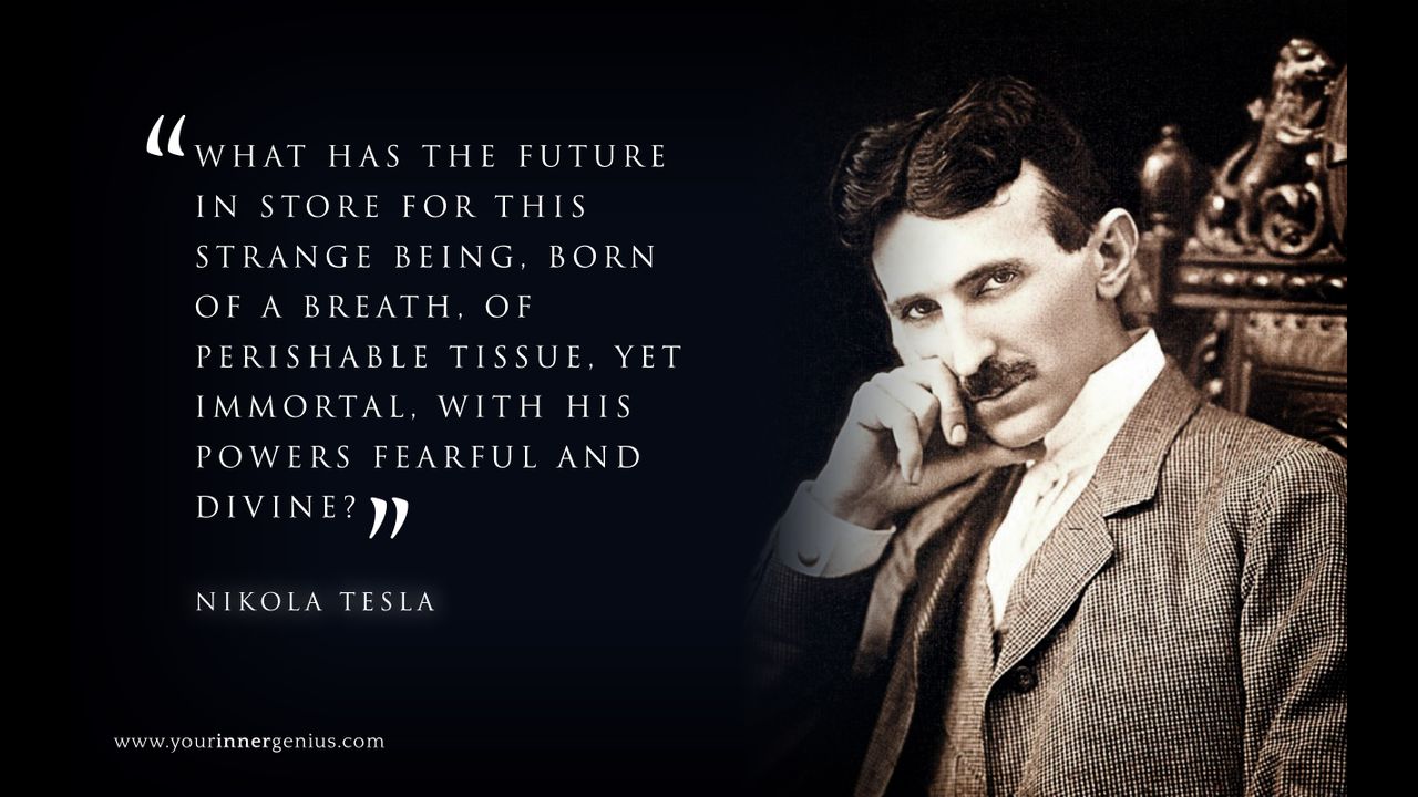 "Humanity is not yet sufficiently advanced to be willingly led by the discoverer's keen searching sense ... but who knows, perhaps it's better this way right now" - Nikola Tesla