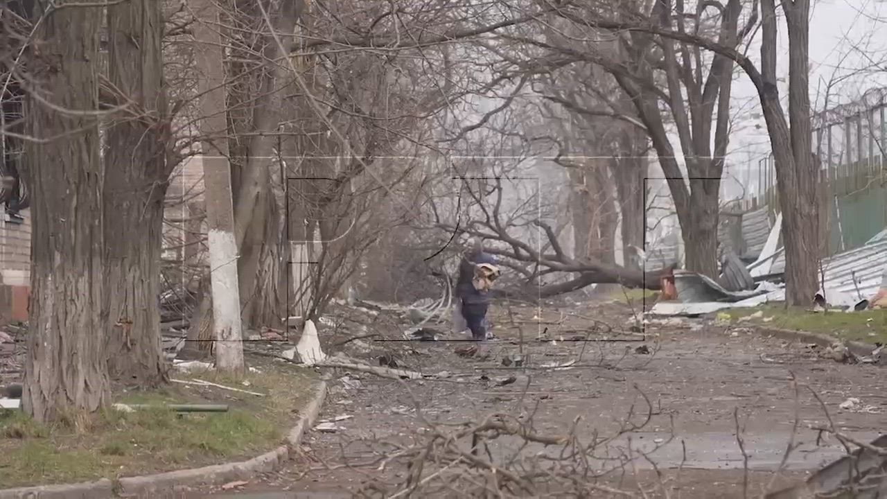 Russian marines take the lost grandmother out of the battlefield, after which the armored personnel carrier begins to work on the positions of the Azov national battalion. Notice that Azov doesn't stop firing even in the presence of a civilian.