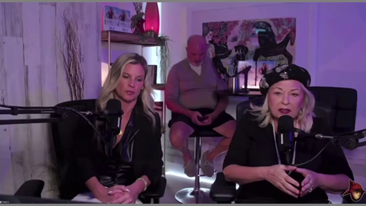 Qanon grifter Liz Corkin sits in silence.
