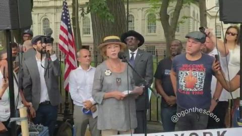 A Holocaust survivor speaking at today’s protest outside NYC City Hall.