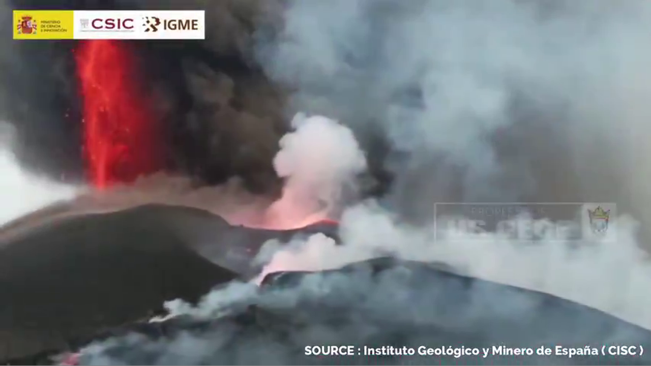 Shaken By Earthquake, Nov 03, 2021, La Palma Explosion Spouting Streams Of Black Lava Causing Tourists To Be Trapped