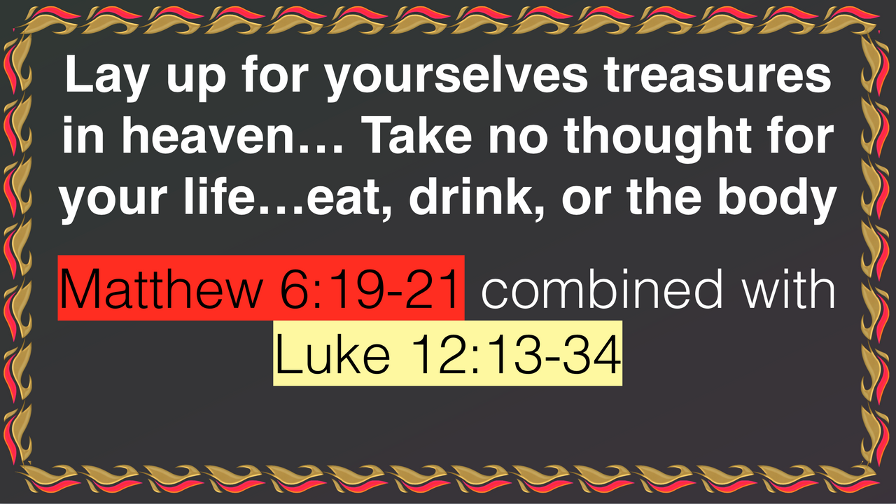 099c. Moving Matthew 6:19-21 & 24-34 To Be Later Combined With Luke 12:13-34