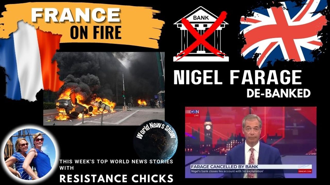 Weekly World News Report Major flashpoints around the globe this week starting in France. Protesters, mostly minors, have torched cars, damaged infrastructure, and clashed with police in an outpouring of rage since an officer shot Nahel M., a 17 yr old, point blank as he attempted to flee a traffic stop on Tuesday. The French government said Sunday that hundreds more had been arrested in a fifth night of rioting. In the UK, Brexiteer, Nigel Farage, has been de-banked. "The establishment are trying to force me out of the UK by closing my bank accounts… If they can do it to me, they can do it to you too”, said ‘Mr. Brexit’ as he revealed that suddenly no British bank would let him have an account. Join us as we dive into what is really going on with the Wagner group and Russia as there may be more than meets the eye. All this and so much more in this week's TOP World News Stories! Read More:https://www.resistancechicks.com/france-on-fire/
