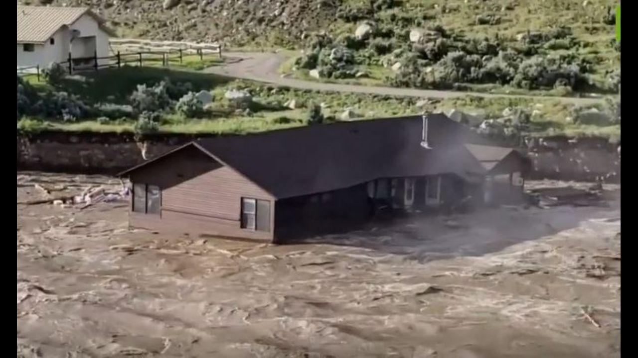 Flooding in Montana caused torrents of rain and, combined with a rapidly melting snowpack, this undercut the riverbank of Yellowstone River, which led to a house sliding into the rushing waters and floating away with the current, mostly intact.