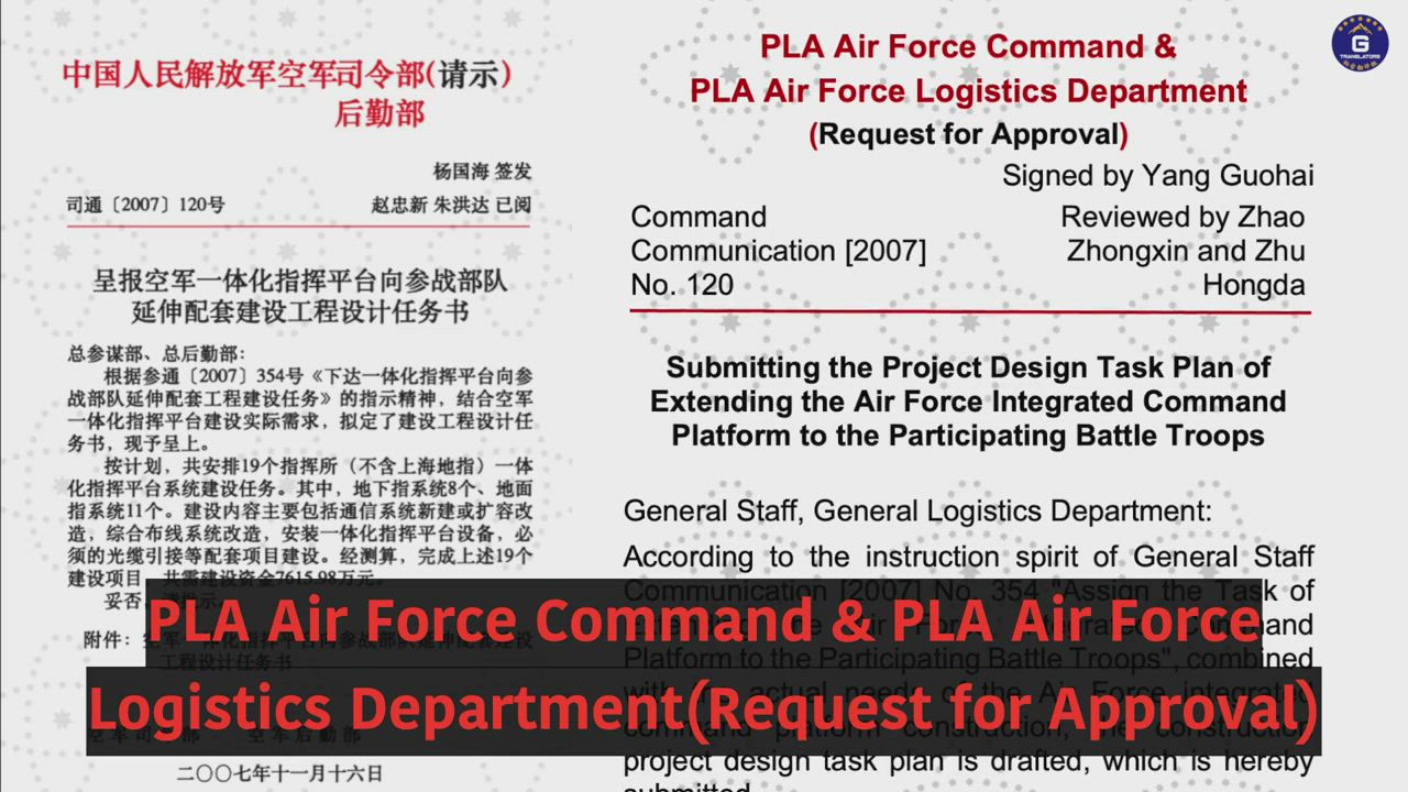 Exclusive:PLA Air Force Command & PLA Air Force Logistics Department (Request for Approval) Command Communication [2007] No. 120