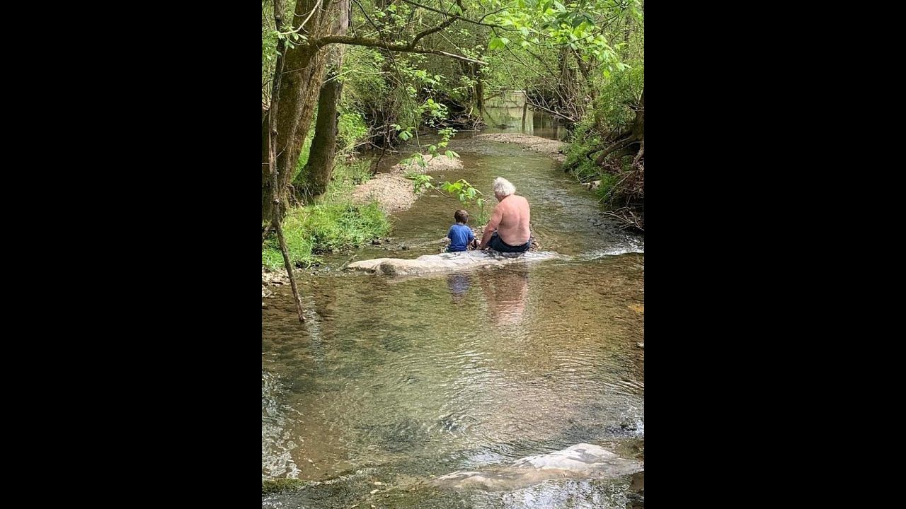 Went down to the creek that runs thru our land with Grandson Wyatt to play and wade in the water. Mrs started taking pictures from bridge and filming. The thumbnail shot is from bridge.