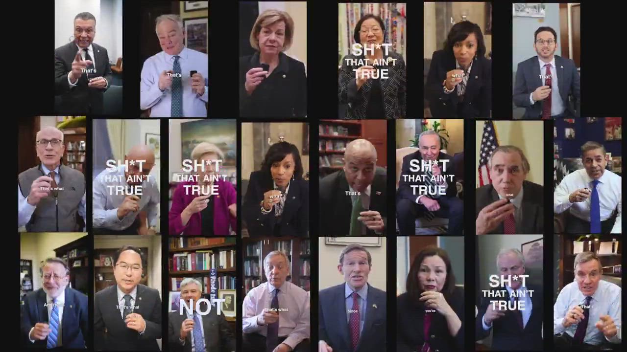 Just hours before Donald Trump's speech to Congress, Democrat senators dropped identical, scripted videos attacking him.