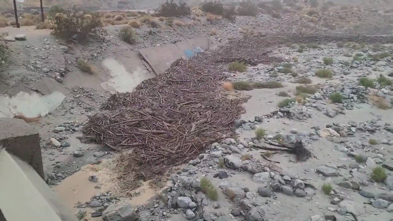 Massive Debris Plug Flooding Headed For Palm Springs.