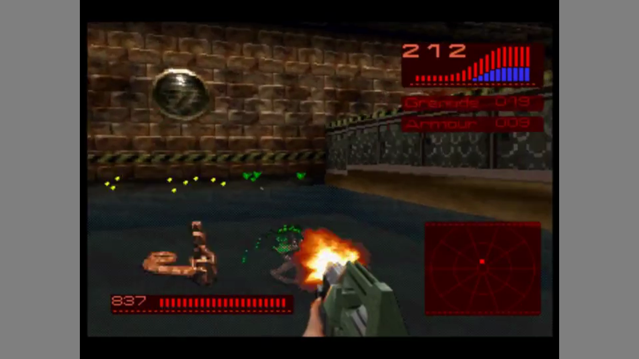 Alien Trilogy is first person shooter based on the (at this time) three Alien movies. It was developed by British company Probe Entertainment and published by Acclaim. The game came also out for PC and for the Playstation. Versions for the 32X and the N64 were also planned, but got cancelled. You play the heroine of the saga, Alan Ripley, and start off at the colony from the film Aliens. Later levels take place at locations from the other two movies. The levels of the game are missions which come with an objective each, like taking out all enemies or activating power sources. Enemies in the game are taken from the movies, like Facehuggers, infected colonists and the original Alien.