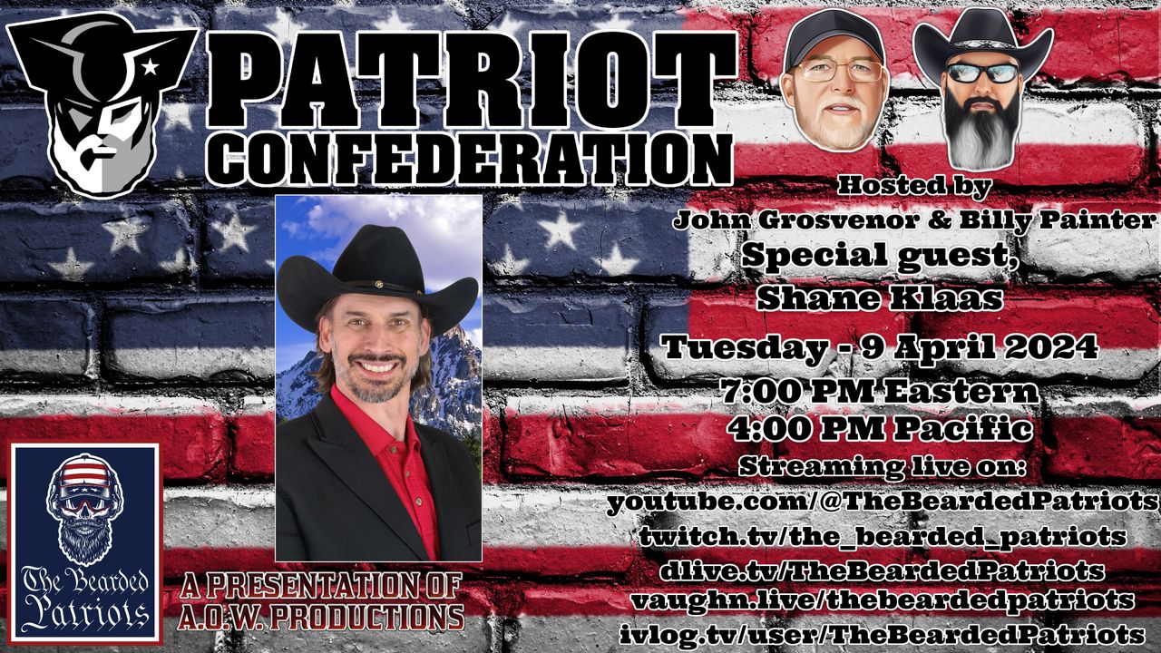Every patriot has an obligation to question authority. Those who are honest are not concerned with your watchful vigilance and those with integrity are not concerned with your discernment. Every American is obligated to voice their concerns and stand up for their freedoms and liberties. Ladies and gentlemen, we are the men in the arena, we are the Patriot Confederation! Proudly hosted by John Grosvenor and "Bad Billy" Painter! This week Shane Klaas joins the show.