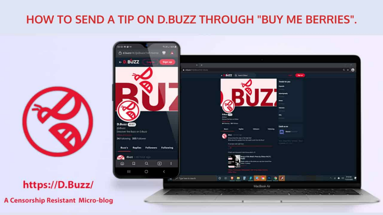 This video will be looking at how to send a tip on D.Buzz to another user by using the built-in "TIP" Function on D.Buzz. This makes use of the "Buy Me Berries" HIVE web app. Please note, all Tip are send in HBD (Hive Backed Dollars) and has a minimum send value of at least 1 HBD.