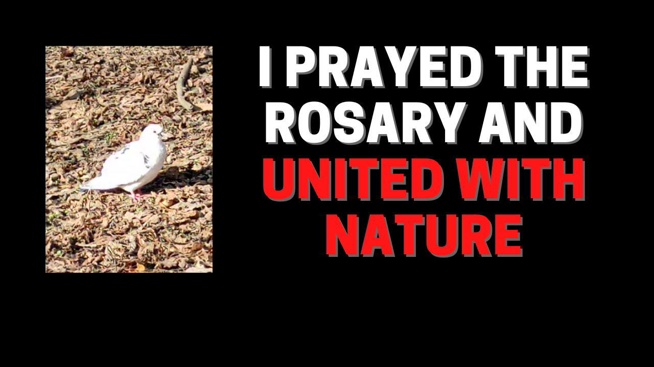 While prayering the Rosary in the park lots of birds, a white pigeon and a squirrel got closer and closer to me and I felt united with nature.