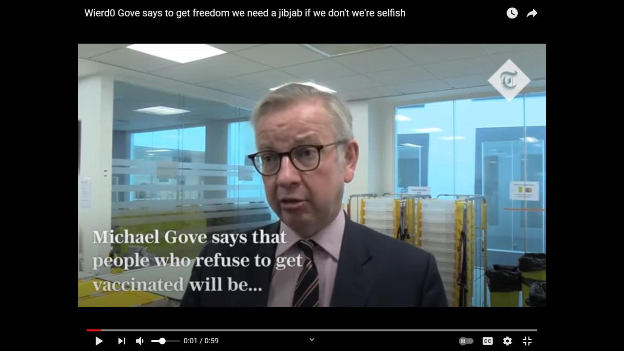 Satanist Gove says to get freedom we need a jibjab if we don't we're selfish [28.07.2021]