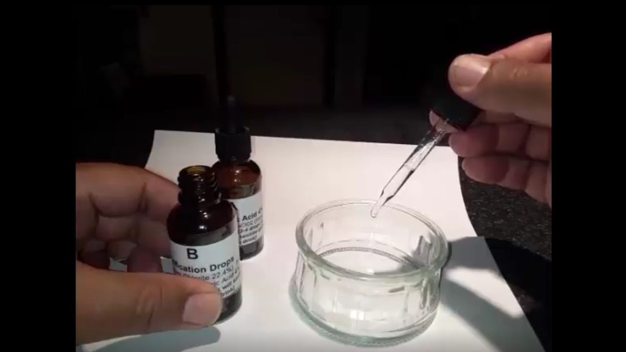 1 drop MMS mix demo. Used for people starting out with the Startup Procedure, first timers and small applications like eye drop mixes. It is relatively weak and almost tasteless.