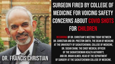 REC'D CALL: CANADIAN DR. FRANCIS CHRISTIAN FIRED FOR GIVING PEOPLE ALL THE INFORMATION ABOUT THE VAX