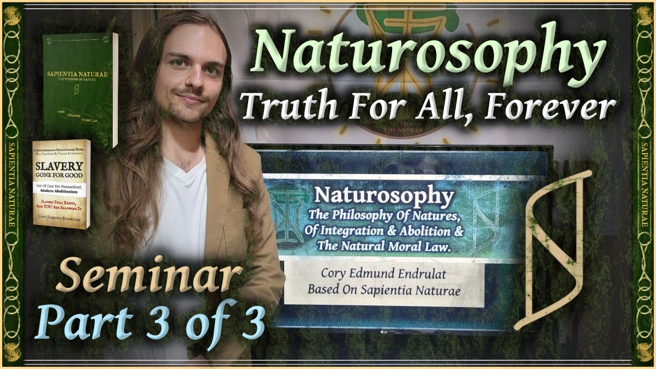 This seminar is titled "Naturosophy - The Philosophy Of Natures, Of Integration And Abolitionism And The Natural Moral Law" by Cory Edmund Endrulat. Part 3 of 3. Know, You Must. Truth For All, Forever. Restoring Humanity. Feel Free To Clip, Share And Use For Any Project Of Yours. All Slides: https://ibb.co/album/sW7bX3 All Of Cory's Links: https://taplink.cc/coryhealth Music By Kinobe. - #seminar #presentation #naturallaw #naturallaws #nature #naturalism #stoicism #transcendentalism #philosophy #study #morality #morallaw #moral #webinar