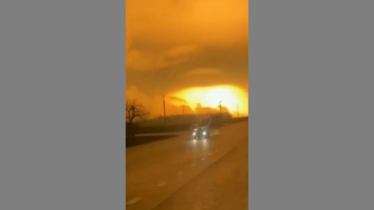 Jim Stone: "Thermobaric weapon bigger than a MOAB used on Kharkiv airbase. Russia said theirs were 5X what the United States has, and it sorta looks like it. Airbase obviously no longer in use. Looking at the time it took for the shockwave to dissipate, this has a kill diameter just short of a mile across, probably about a 700 meter kill radius. Nasty. The camera was at about 7000 feet distance, the kill radius was probably about 2300 feet.