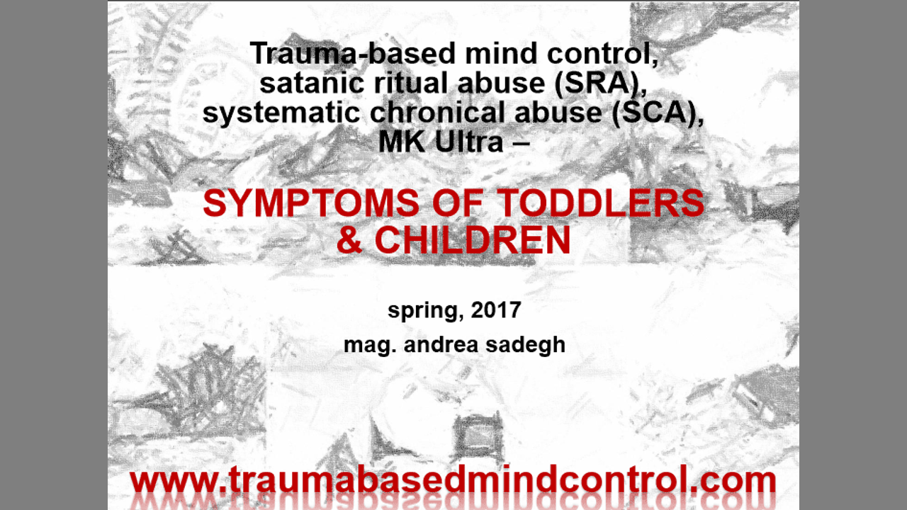 The detailed presentation can be found on http://traumabasedmindcontrol.com/index.php/presentation-of-symptoms-of-toddlers-and-children/