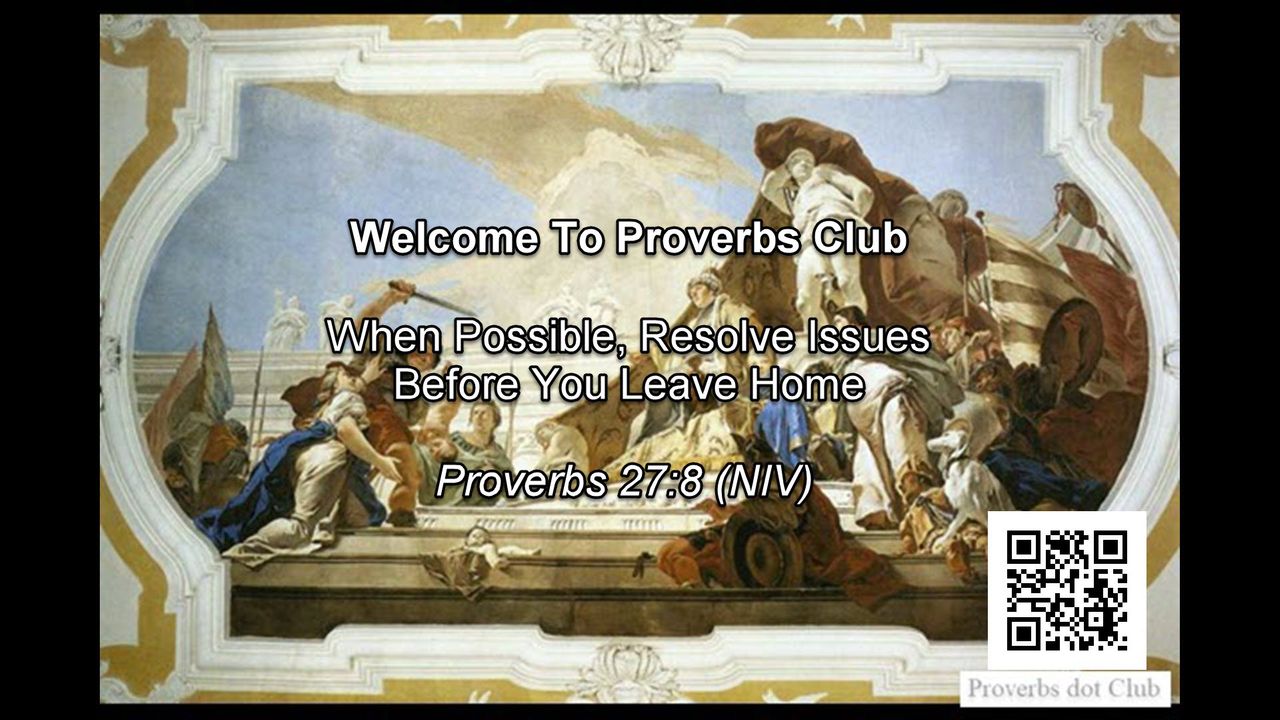 Welcome To Proverbs Club.When Possible, Resolve Issues Before You Leave Home.