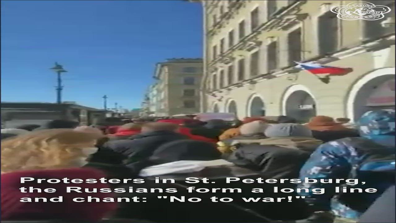 Protesters in St. Petersburg, the Russians form a long line and chant: “No to war!”