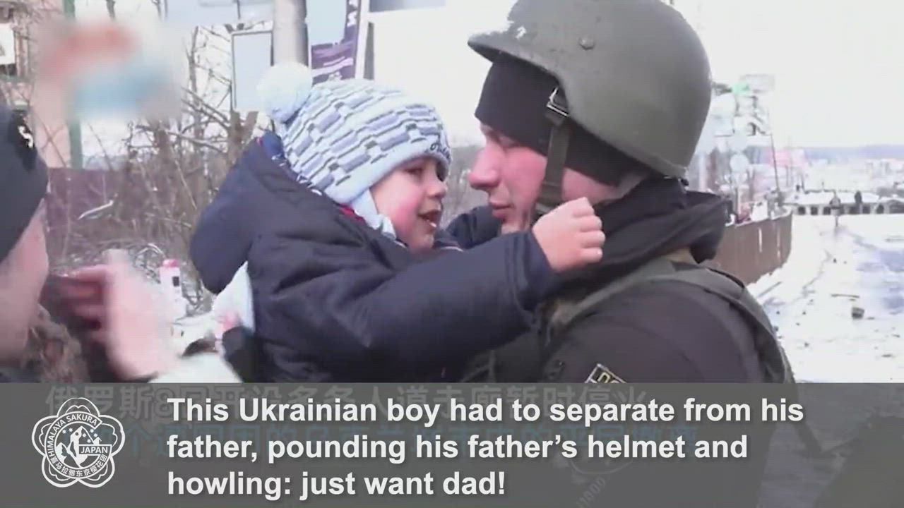 This Ukrainian boy had to separate from his father, pounding his father’s helmet and howling: just want dad!