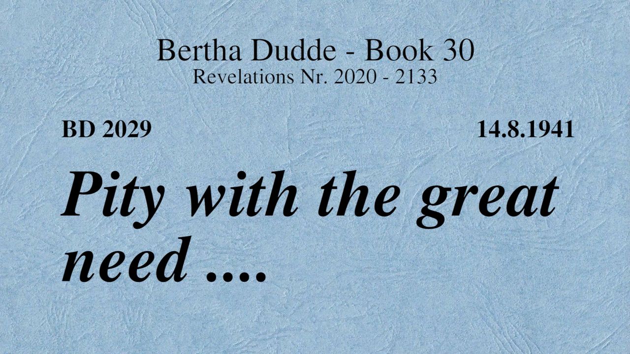 With these words the revelations of God to Bertha Dudde began on June 15, 1937, which found the conclusion on August 17, 1965 with the manifestation 9030 as a seal.