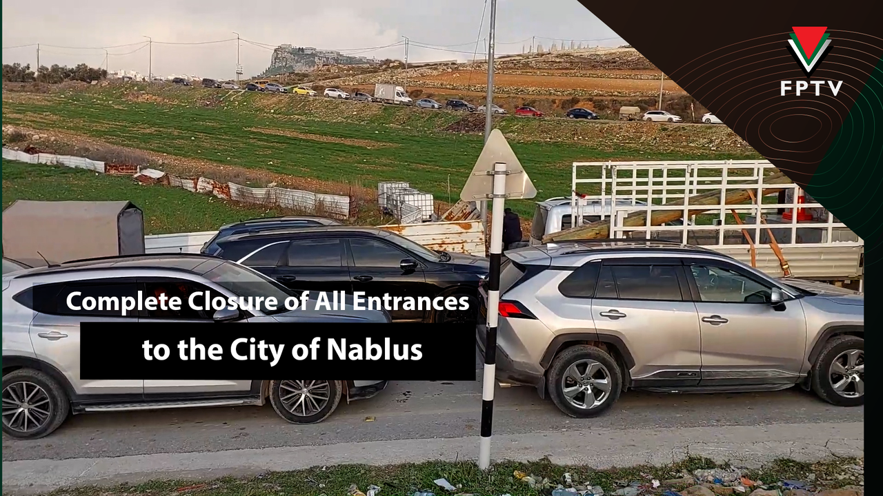 The Zionist occupation forces closed all entrances to the city of Nablus and prevented cars from entering or exiting the city, in addition to conducting thorough inspections of vehicles and citizens' phones, which caused a severe traffic jam.