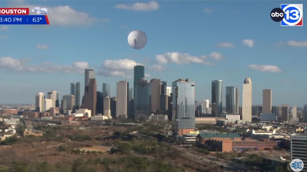 Chinese spy balloon over Houston Texas live from city camera.