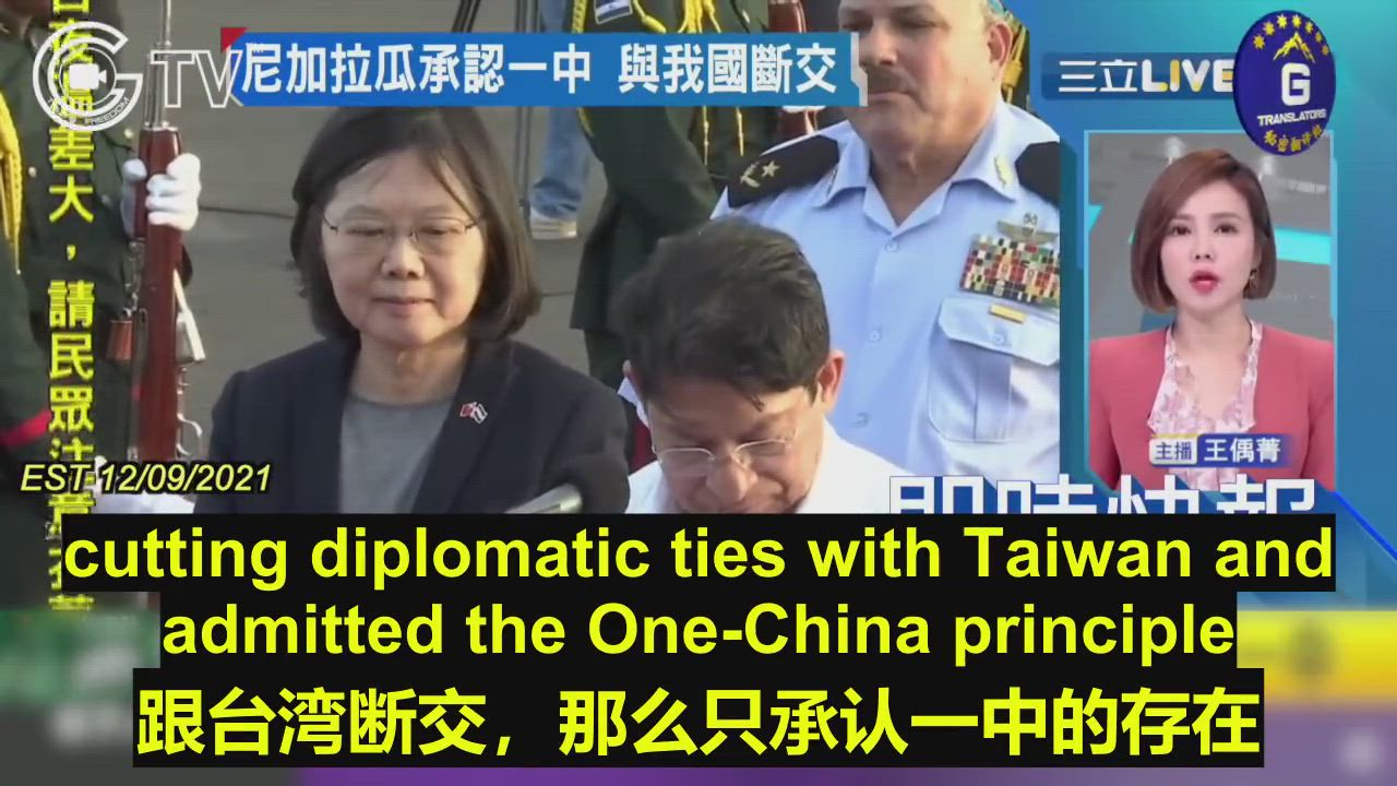 12/09/2021 Taiwan media Sanli reported that the Central American country Nicaragua declared cutting diplomatic ties with Taiwan admitted the One-China principle.