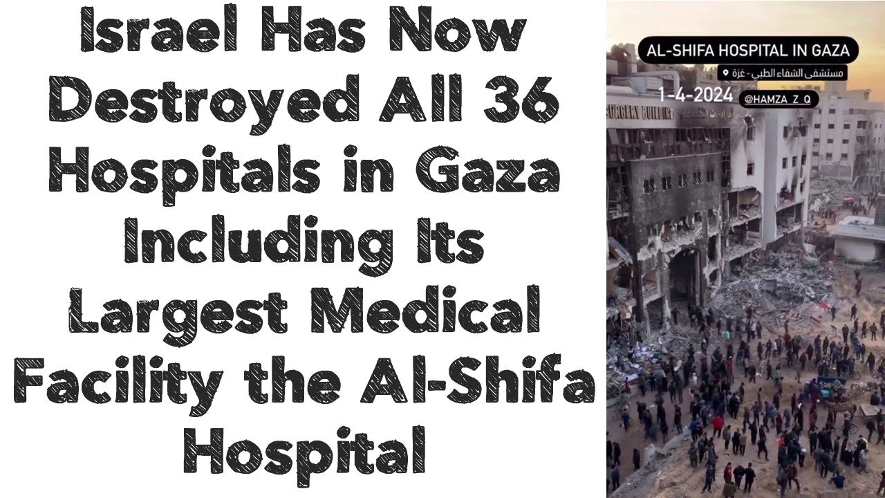 Israel Has Now Destroyed All 36 Hospitals in Gaza Including Its Largest Medical Facility the Al-Shifa Hospital