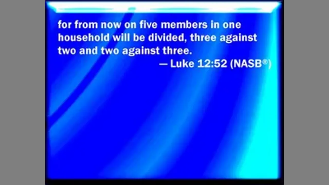 From now on there will be five in one family divided against each other, three against two and two against three. Luke 12:52