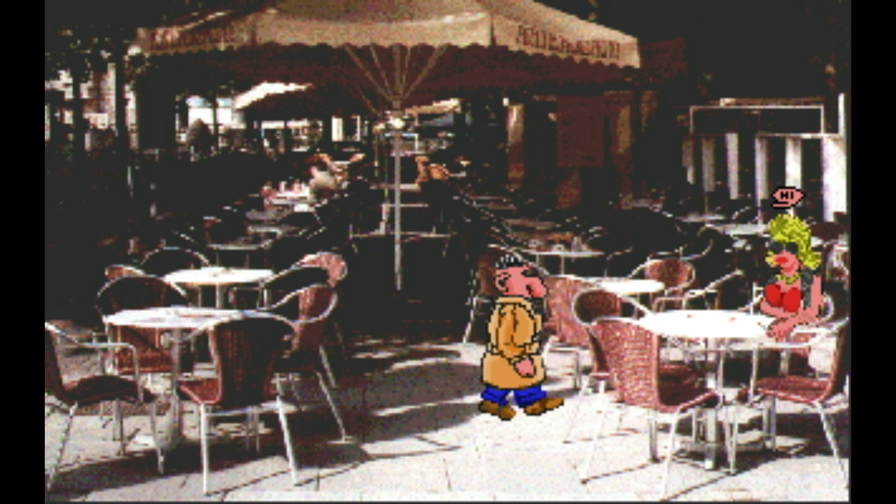 The game uses an interface similar to Sierra's SCI adventures. Unlike Sierra games, you have a feature that the game indicates when the cursor is over an usable object. While the characters are drawn cartoons, the backgrounds consist of photos of real-life locations in Amsterdam.