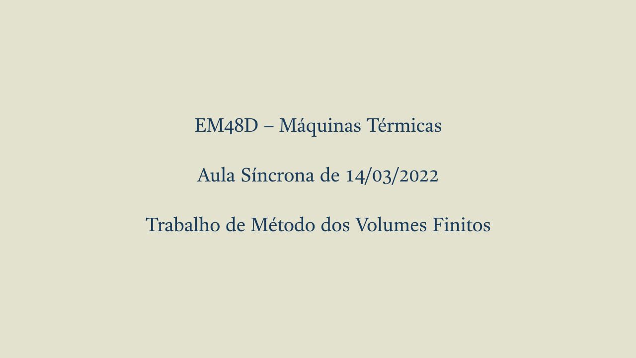 Aula Síncrona de Máquinas Térmicas de 14/03/2022 - Trabalho de Método dos Volumes Finitos
