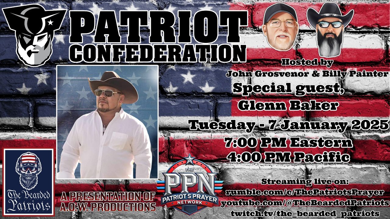 Every patriot has an obligation to question authority. Those who are honest are not concerned with your watchful vigilance and those with integrity are not concerned with your discernment. Every American is obligated to voice their concerns and stand up for their freedoms and liberties. Ladies and gentlemen, we are the men in the arena, we are the Patriot Confederation! Proudly hosted by John Grosvenor and "Bad Billy" Painter! This week Glenn Baker joins the show.